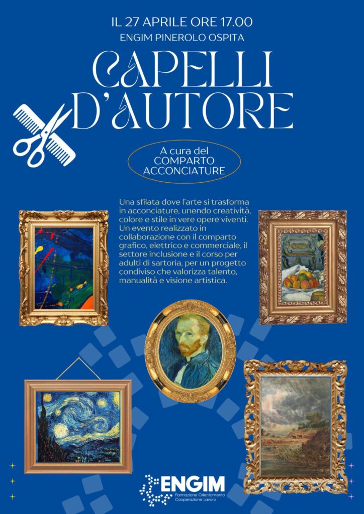 Il prossimo 27 aprile alle ore 17.00, presso il Salone ENGIM (Via Regis 34), si terrà la sfilata “Capelli d’autore”, un evento che celebra la creatività e le competenze degli allievi attraverso un originale dialogo tra arte e acconciatura.